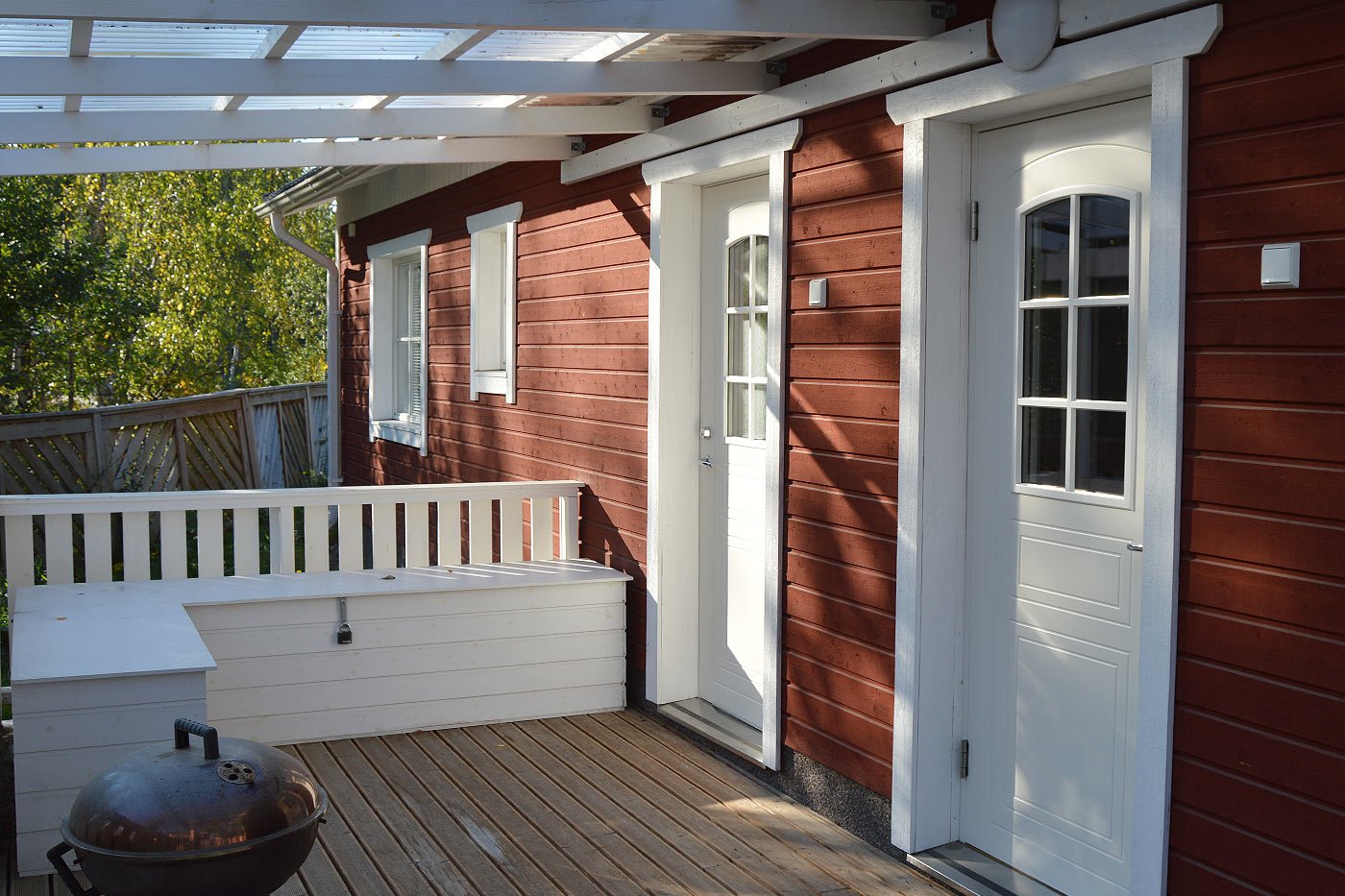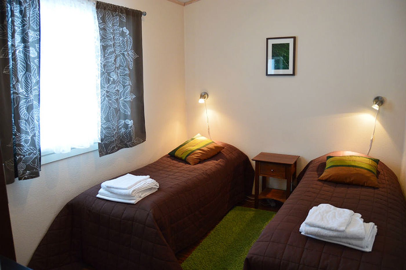 makuuhuonetta-yhdessä makuuhuoneessa on parisänky, toisessa kaksi erillistä vuodetta,
