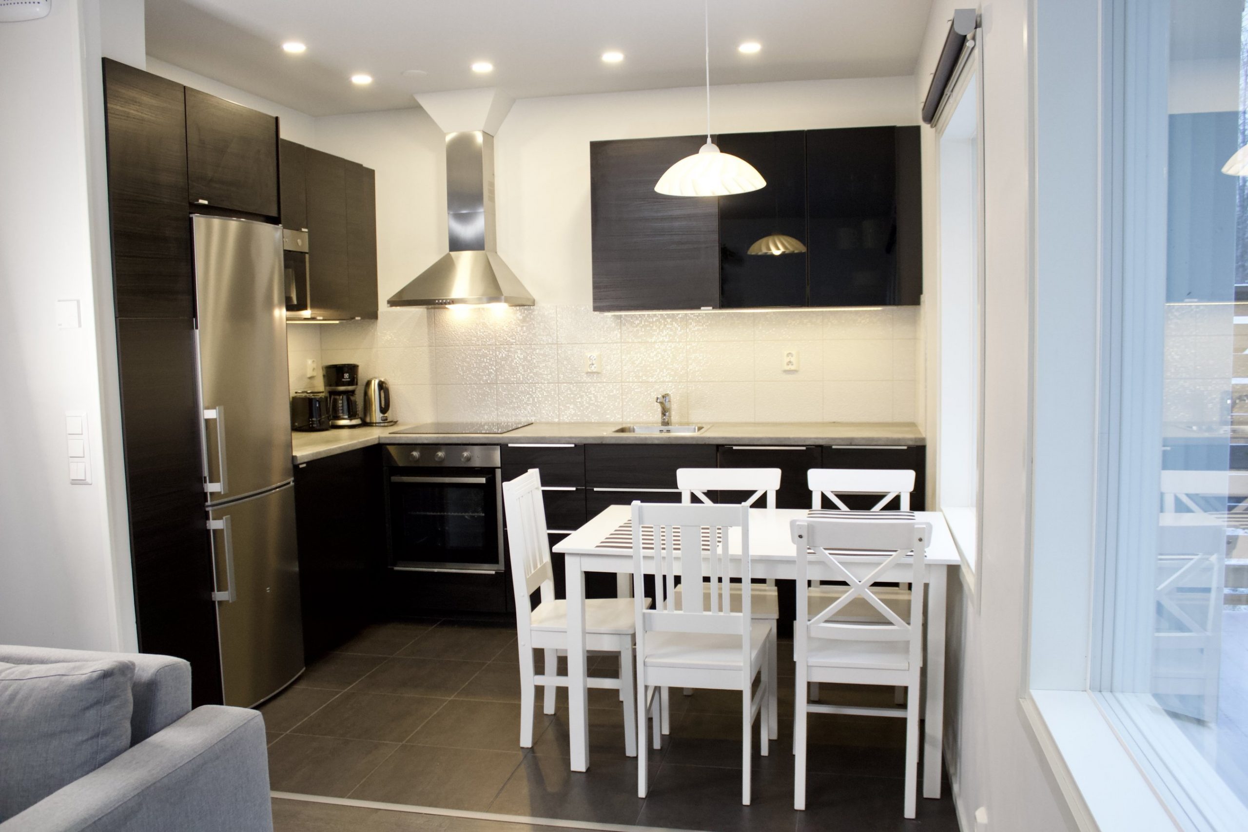 pinta-alaltaan 58 m². Valoisa tupakeittiö tarjoaa levitettävän vuodesohvan 1–2 henkilölle.